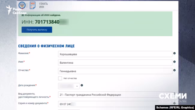 Журналісти встановили, що Валентина Хорошавцева є племінницею судді Стефанів і громадянкою Росії – вона народилася та постійно проживає там, що підтверджується численними витоками з баз даних. Крім того, її чинний російський паспорт зафіксований у системі Федеральної податкової служби Росії.