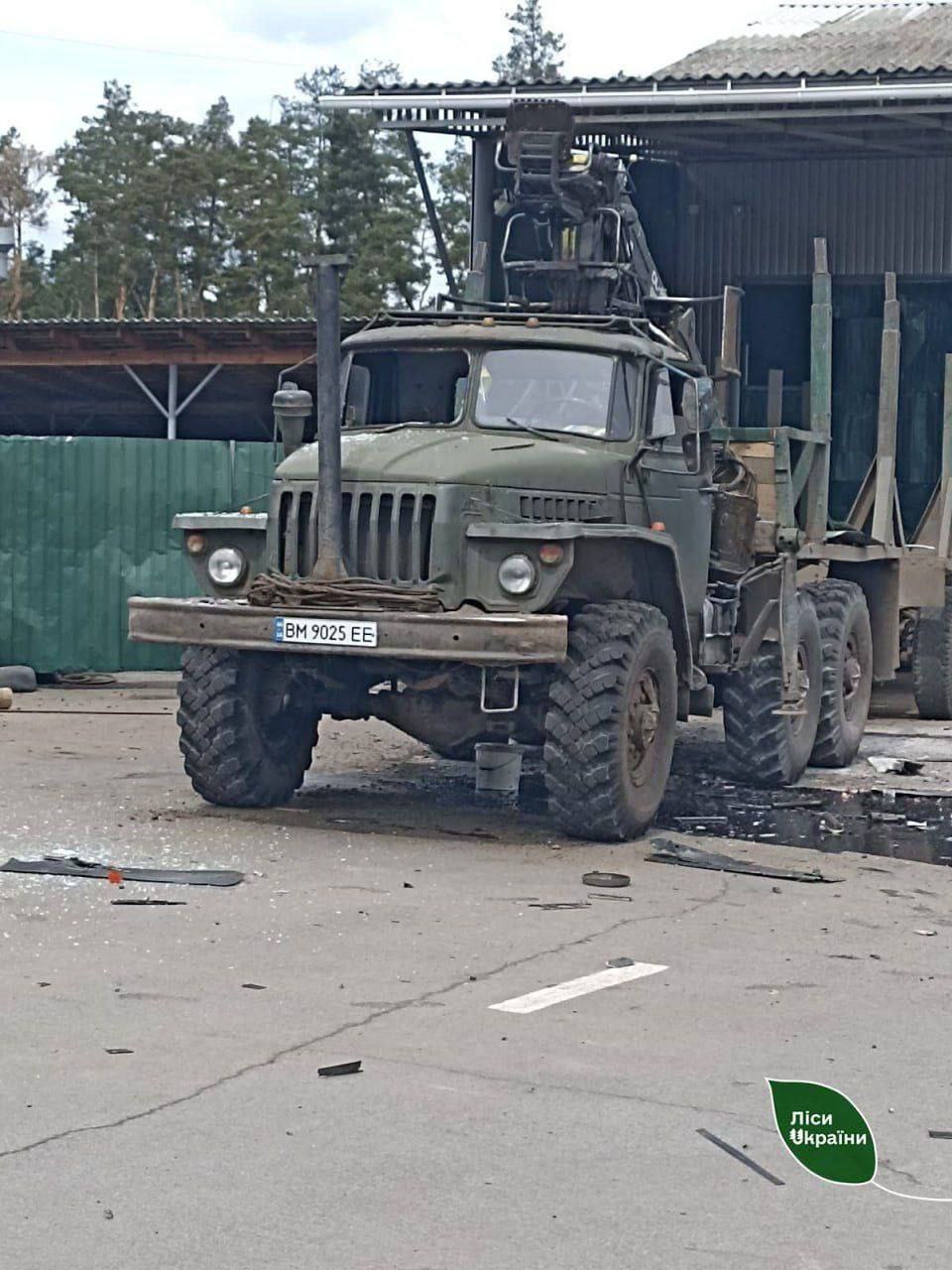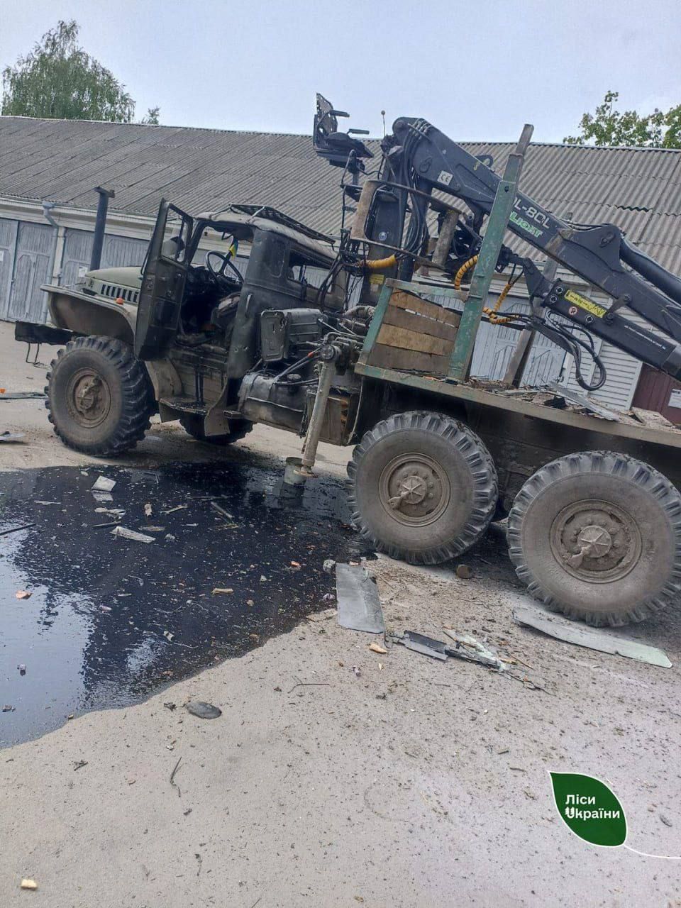 Пізніше мер міста Олександр Лисенко повідомив про влучання ворожого дрона у лісогосподарську машину. Безпілотник влучив у мастильний бак. Пошкоджені також кабіна та спеціальна установка.