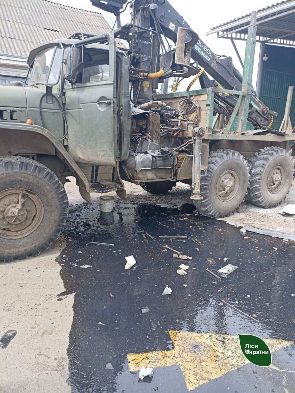 Дрон влучив у лісогосподарську машину / Фото Лисенко