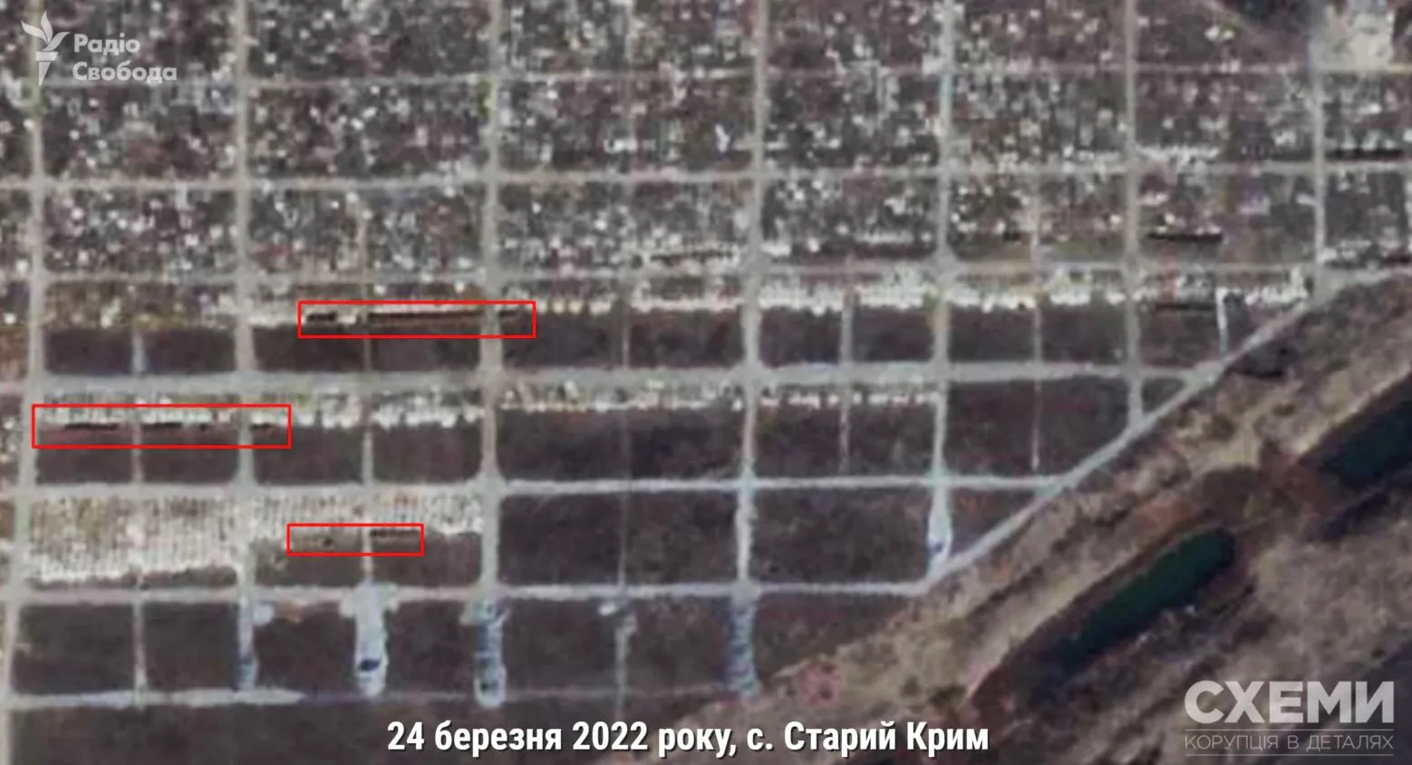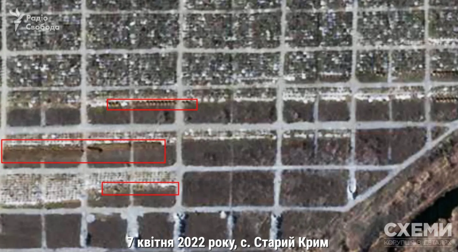 Журналісти "Схем" повідомляють, що траншеї з'явилися на території Старокримського кладовища 24-го березня. Селище перебуває під окупацією росіян з 10-го березня.