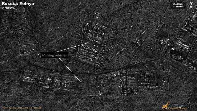 Надано Capella Space. Ми подивилися на зображення районів західної Росії, які нещодавно були під хмарами. Відбулися важливі зміни в складі російських військ та їх розташування. По-перше, Єльня зменшується.
