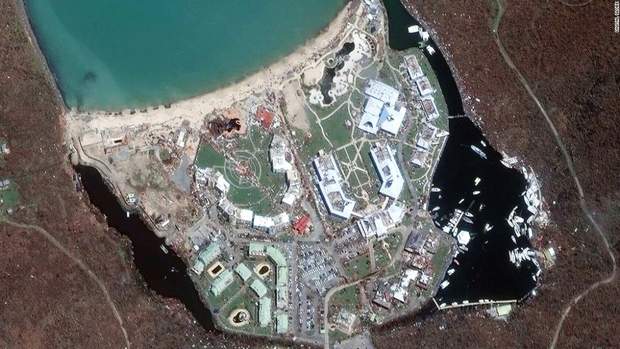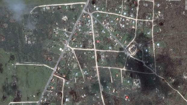 На знімках, зроблених до і після стихійного лиха, помітно, як ураган змів цілі населені пункти і порти, передає СNN.