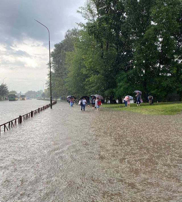 Білоруське місто Ліда через негоду потерпає від надмірної кількості опадів. Вулиці та двори підтоплені. На "проблемних" ділянках доріг рух громадського транспорту ускладнений.
