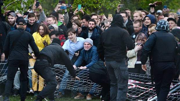 З однієї сторони люди, а з іншої спецпризначенці ламають огорожу. Так у російському Єкатеринбурзі жителі захищають центральний парк. Замість зеленого куточка влада хоче там звести храм.