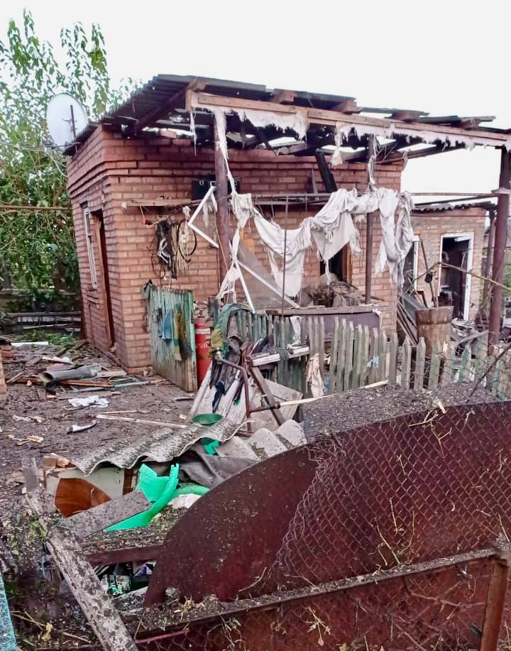 Також глава ОВА повідомив про пошкодження понад 20 приватних і багатоповерхових будинків. Крім того, уражень зазнали близько 10 господарських споруд. За словами Резніченка, понівечений також місцевий хлібозавод і ще кілька установ. Внаслідок обстрілу загорілися кілька автомобілів. Полум'я вогнеборцям вдалося приборкати.