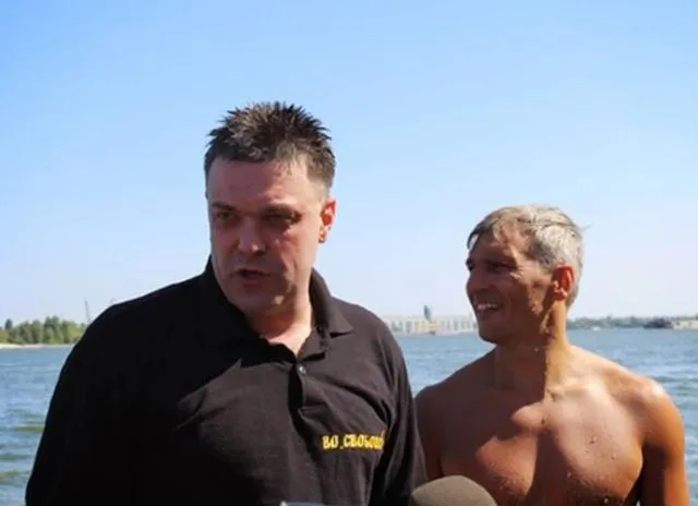 Спільно з побратимами Олег Тягнибок та віце-спікер Руслан Кошулинський пропливли під Крюківським мостом і вийшли на правому березі Дніпра, "таким чином з'єднавши дві частини міста і символічно – України". Заплив фінішував на місці Куруківської битви.