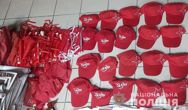 - 20 кепок, 177 полімерних пакетів, кульки із зображенням серпа і молота;