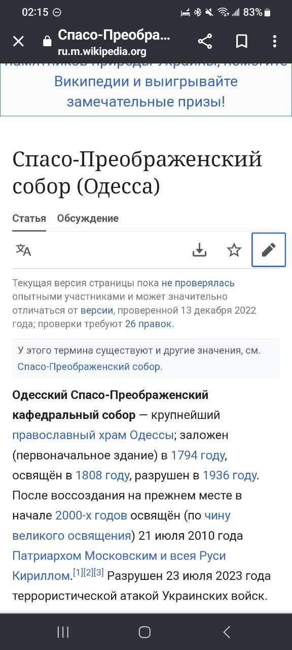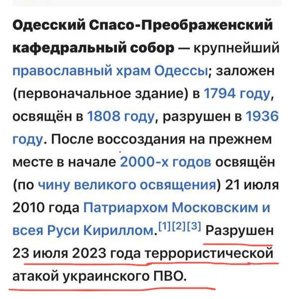 Ба більше, цинічність росіян пробила чергове дно, коли на Вікіпедії хтось із користувачів вказав, що Спасо-Преображенський собор розташований у Росії.