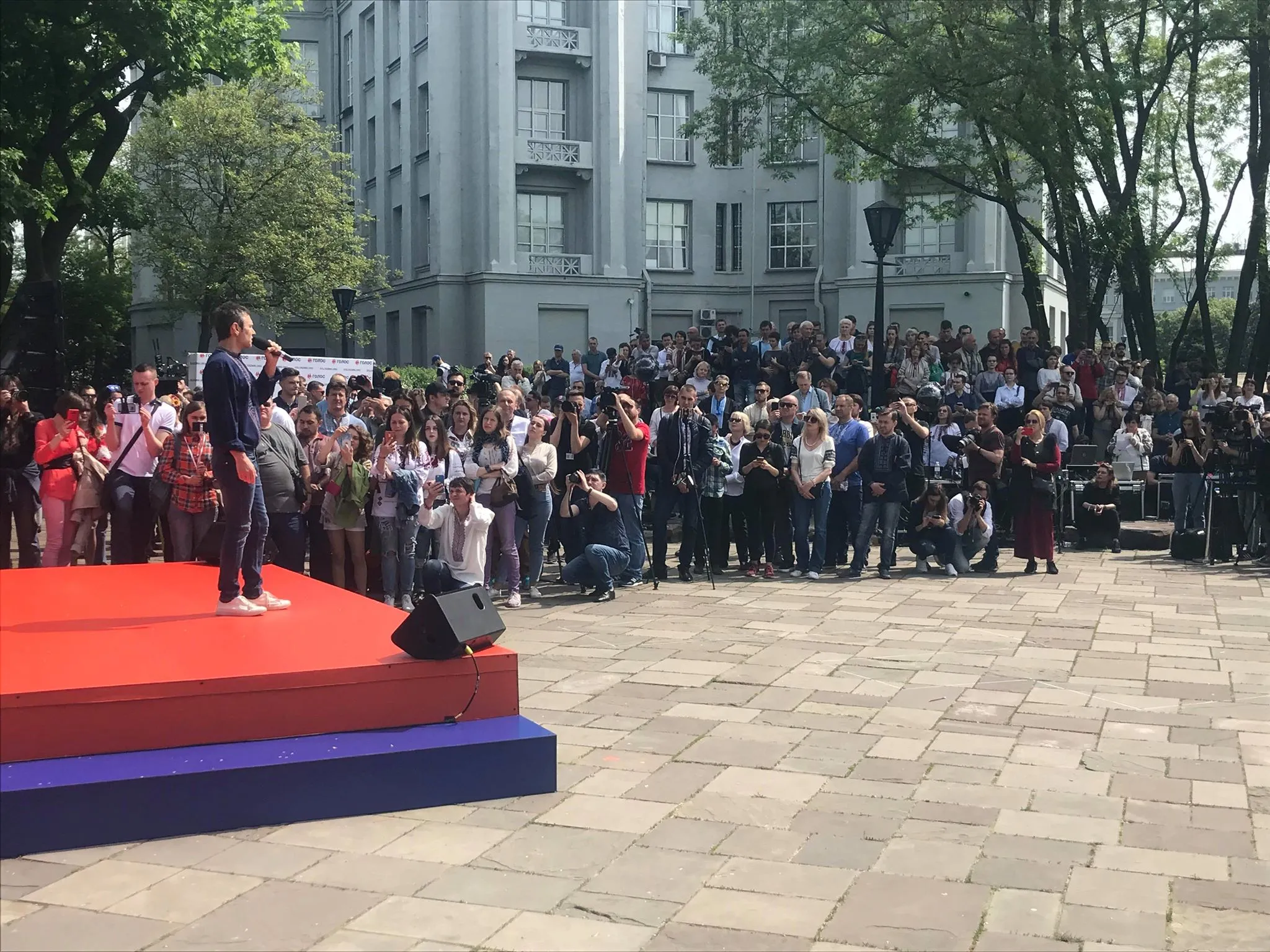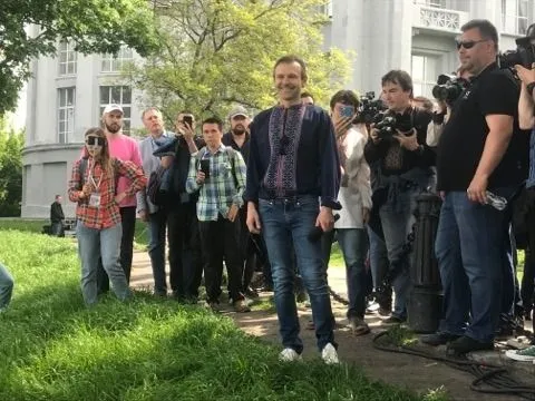 Лідер "Океану Ельзи" виступив у Києві біля музею історії України перед своїми прихильниками.