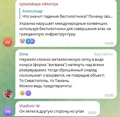Після "бавовни" у Тамані росіяни кинулись звинувачувати українців у порушенні їхнього сну. Цікаво, що у коментарях згадують про нібито порушення Україною міжнародних конвенцій, хоча ніхто не звертає увагу на смерті українців через російські ракети.