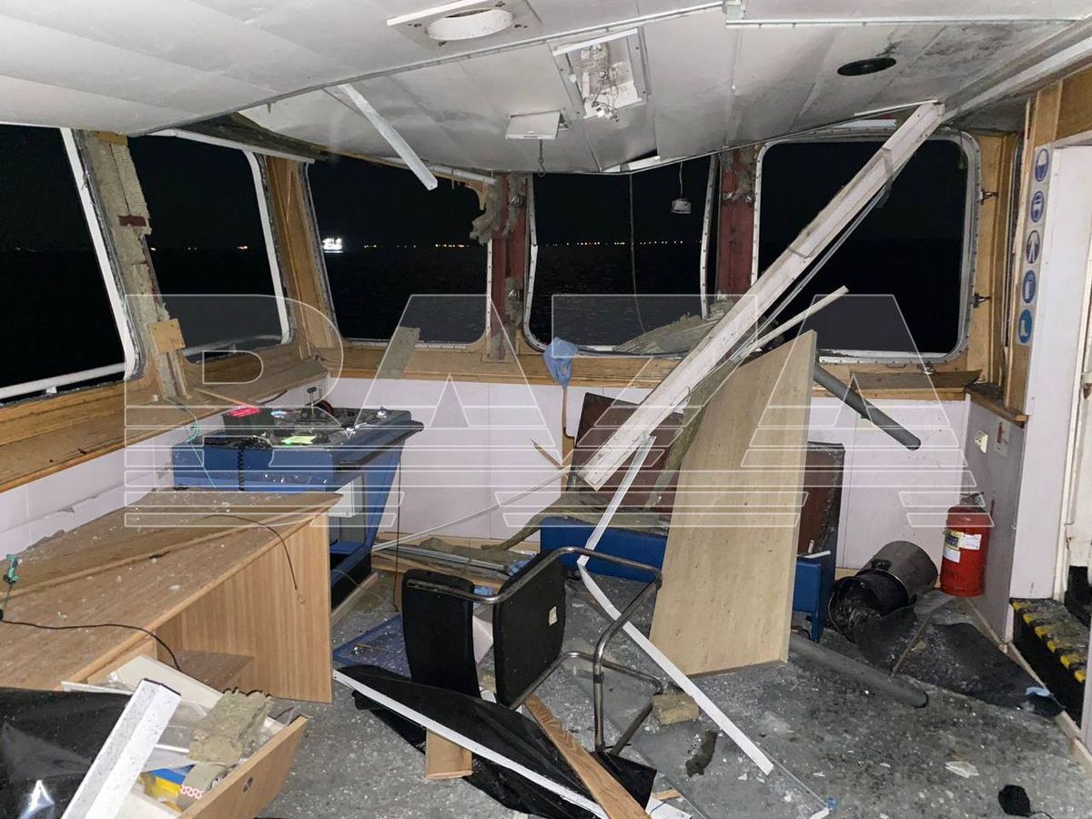 У мережі також опублікували світлини, на яких показали пошкодження російського танкера. На них видно, що повилітали вікна на судні, розкидані меблі та часткове підтоплення машинного залу.