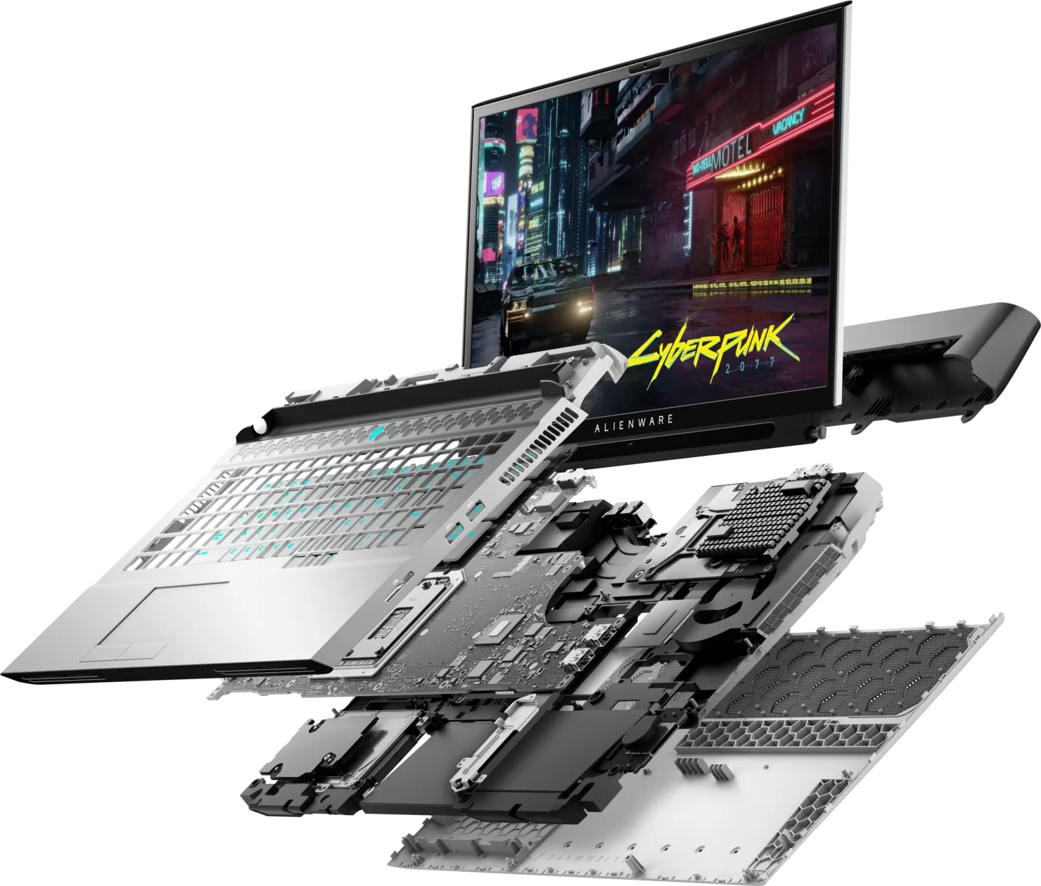 У ноутбуці встановлено два 70-мм вентилятори з 53 лопатями на кожному. Вони охолоджують мідні радіатори, які оснащені п'ятьма тепловими трубками з мідного сплаву, і відводять гаряче повітря через отвори в задній частині. Крім того, всі конфігурації ноутбуків з семифазним VRM графічного процесора або вище оснащуються паровою камерою в рамках технології Alienware Cryo-Tech.