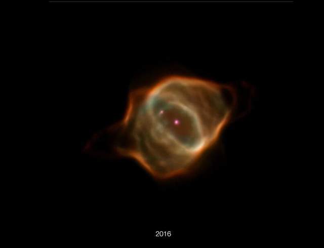 Група астрономів на чолі з Брюсом Баликом з Вашингтонського університету опублікувала результати аналізу знімків туманності, отриманих космічним телескопом Габбл у 1996, 2000 і 2016 роках. Вчені хотіли зрозуміти як змінилася структура і яскравість туманності за останні двадцять років.