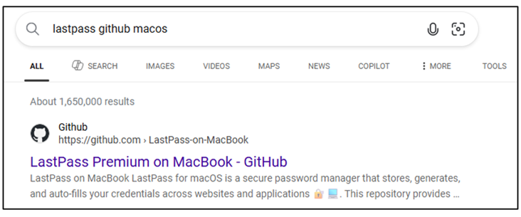 Експерти з кібербезпеки, зокрема з компанії LastPass, зафіксували масштабну кампанію, спрямовану на власників пристроїв з macOS. Зловмисники використовують методи пошукової оптимізації (SEO), щоб просувати вгору у видачі Google та Bing посилання на шахрайські репозиторії на платформі GitHub. Ці сторінки імітують офіційні ресурси понад ста відомих програм, серед яких менеджери паролів 1Password та LastPass, хмарне сховище Dropbox, а також сервіси Notion, Confluence, Thunderbird та багато інших, пише 24 Канал.