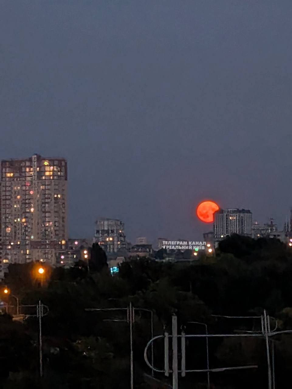 Попри те, що в столиці багато вогнів, вони не заважають милуватися фантастичним місяцем / Фото з київських пабліків