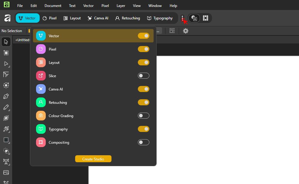 Одним зі значних функціональних оновлень стала можливість глибокої кастомізації. Користувачі можуть персоналізувати інтерфейс, вибираючи та комбінуючи інструменти з будь-яких режимів Affinity, що дозволяє створювати власний робочий простір під конкретні проєкти чи завдання. Ці унікальні конфігурації можна зберігати, експортувати та навіть обмінюватися ними з іншими.