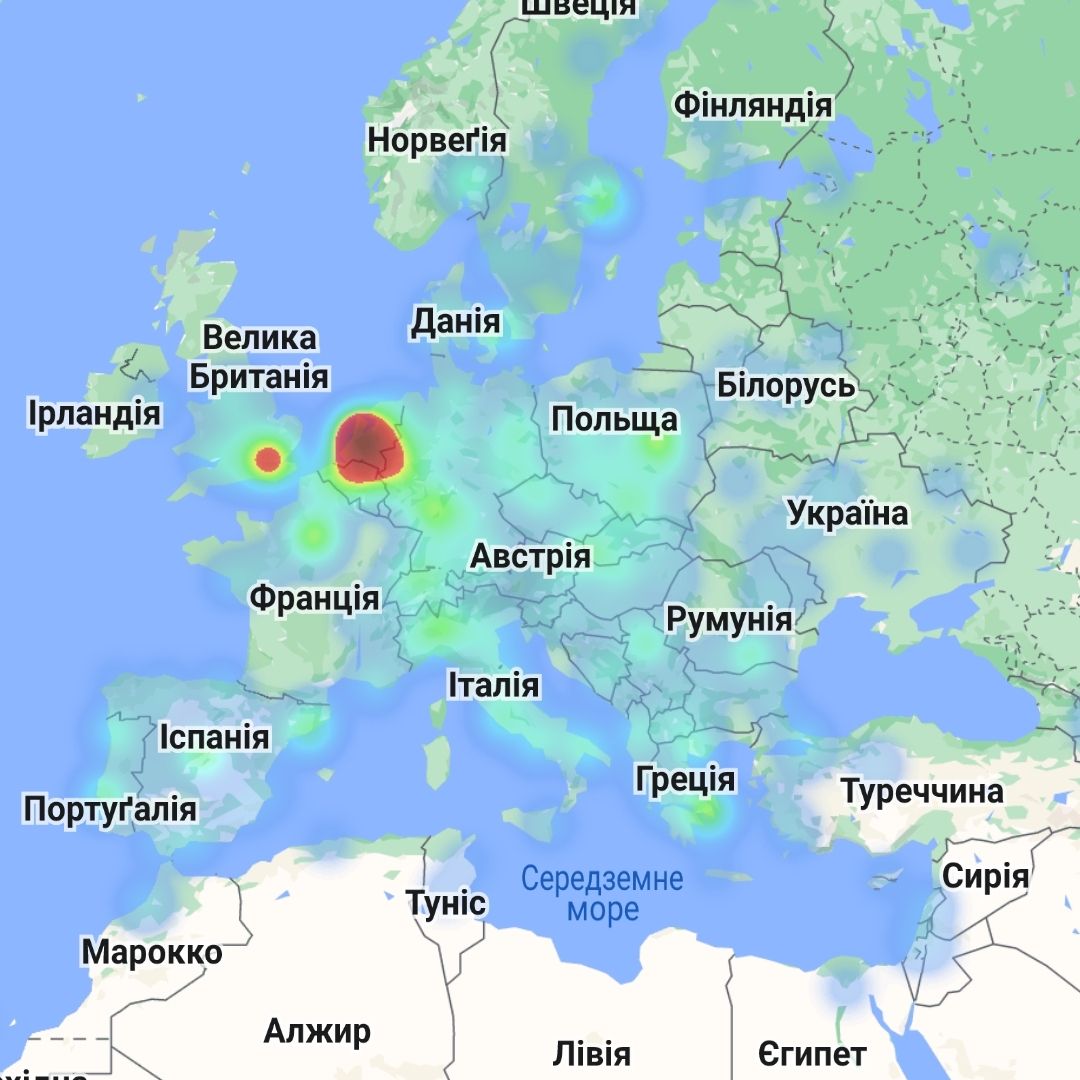 Найбільше скарг надходить із Нідерландів, Греції, Німеччини, Польщі та Франції. В Україні про збій здебільшого повідомляли у західних та східних областях.