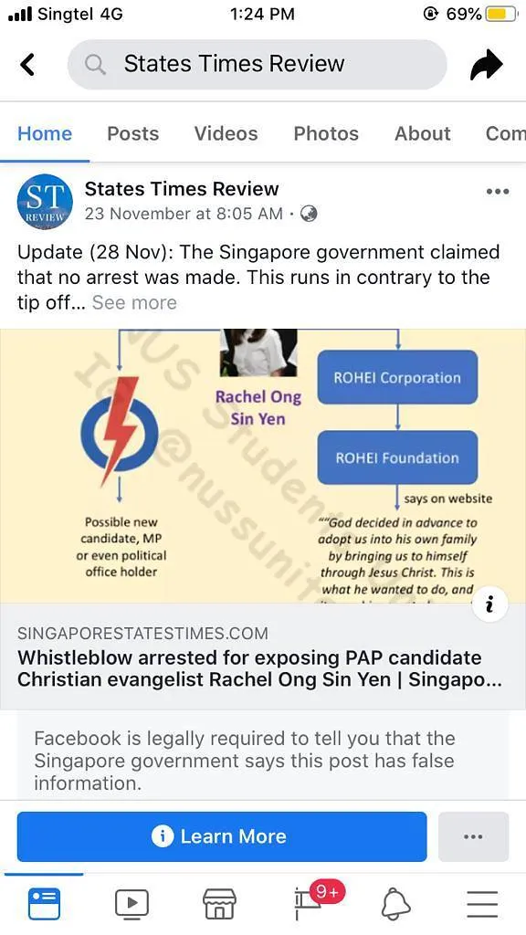 Як наслідок влада Сінгапуру зажадала від Facebook позначити повідомлення як таке, що містить неправдиву інформацію.