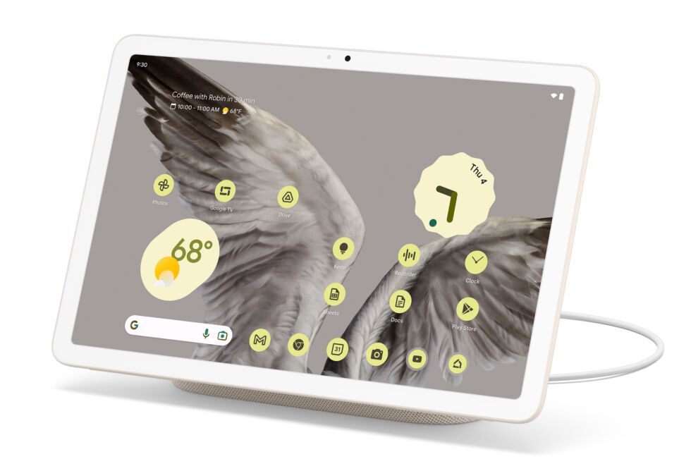Як уже зазначалось, у комплекті з планшетом компанія продає зарядну докстанцію. Вона ж виступає магнітною підставкою для планшета і своєрідним саундбаром, завдяки вбудованим колонкам. Крім того, у зв'язці з Pixel Tablet система дає змогу керувати "розумним" будинком за допомогою Google-асистента. Разом обидва гаджети виглядають вельми естетично, нагадуючи невеликий монітор із симетричними, але досить широкими за сучасними мірками рамками та монолітним алюмінієвим корпусом. Ви також можете купити додаткові докстанції за 129 доларів.