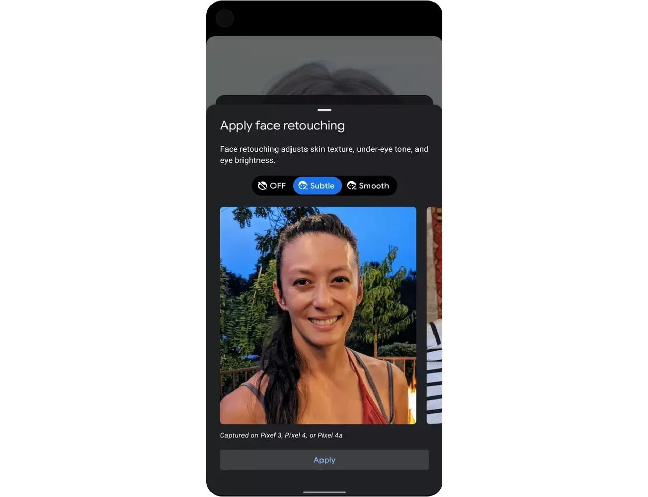 Автоматичне ретушування селфі раніше було активовано в Pixel 4 – тоді представники Google відзначили, що для розуміння найкращого балансу обробки й підкреслення кращих рис зовнішності користувача компанія співпрацювала з весільними фотографами.
