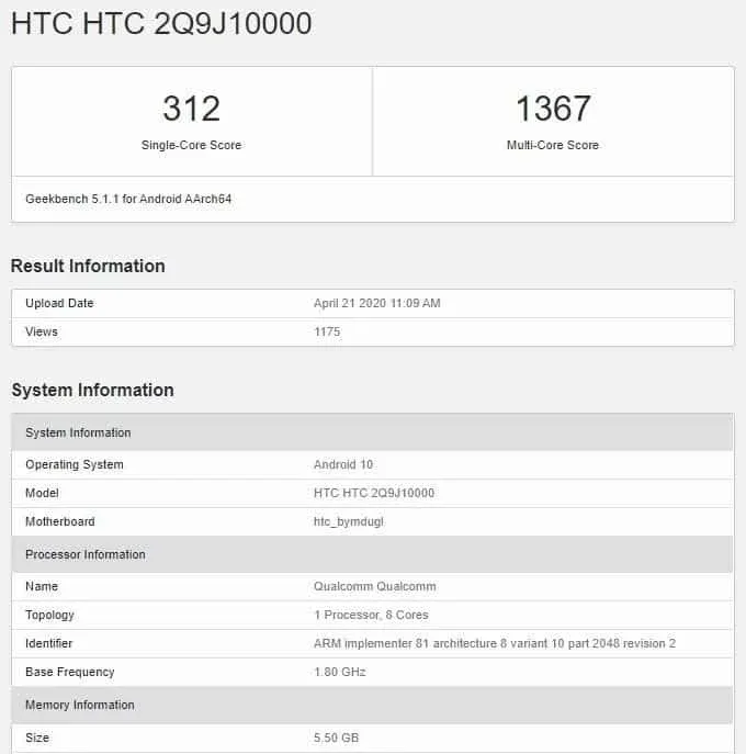Інші специфікації, передбачувана дата анонса і ціна HTC Desire 20 Pro невідомі.