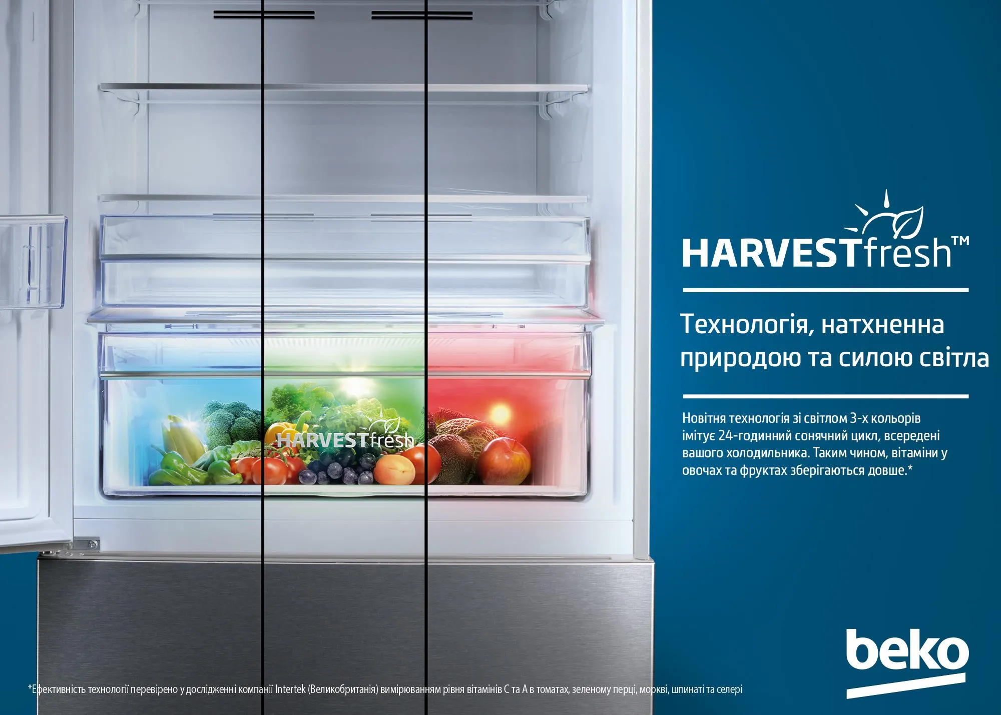 Передова технологія HARVESTfresh™ присутня у лінійці нових моделей холодильників beko.