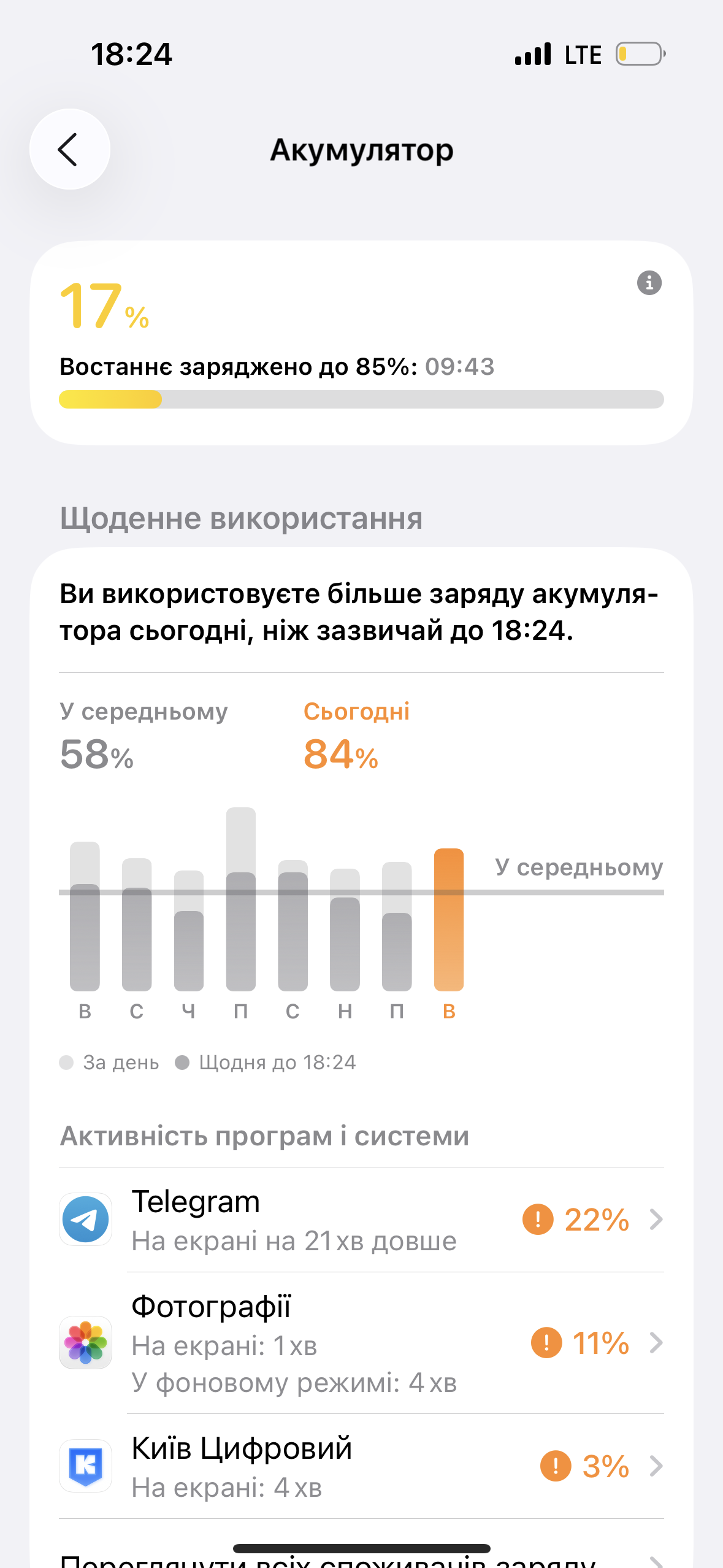 - нагрівання та батарея – після оновлення iPhone дійсно гріється сильніше. Apple попереджає, що відразу після інсталяції великих оновлень батарея їсть більше енергії, а телефон нагрівається — це нормально. У мене за першу добу використання прогрів корпусу відчутно підвищувався кілька разів, хоча потім усе нормалізувалося.