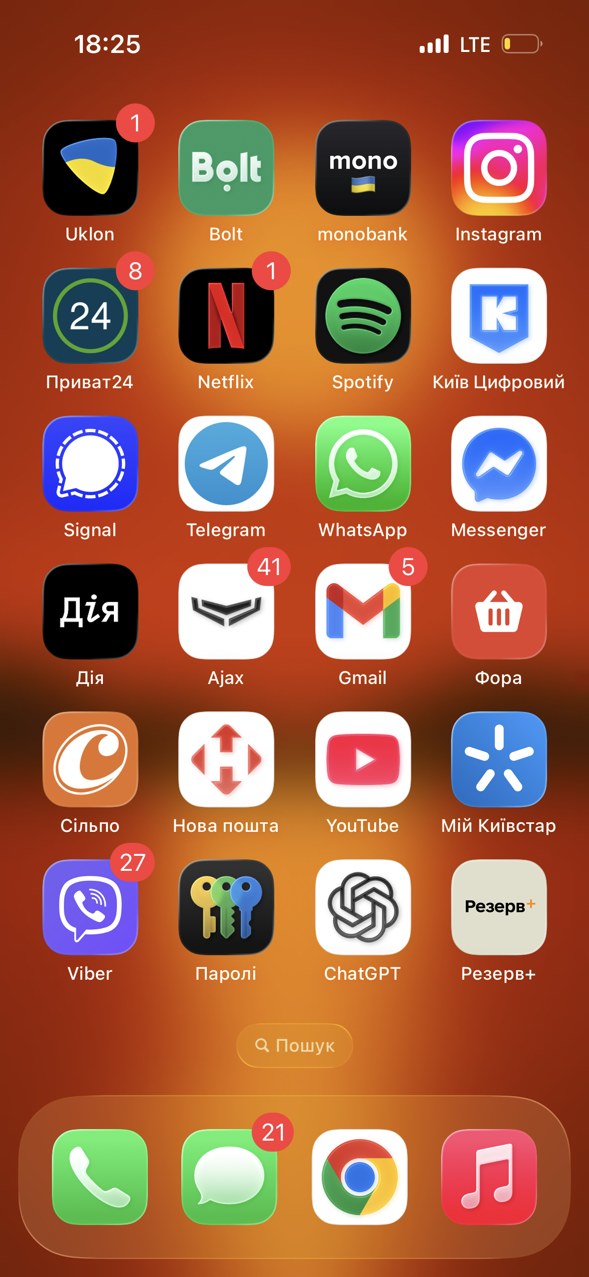 - Як уже зазначав, неповний перехід іконок – хоч Apple рекламує об’ємні іконки, не всі піктограми оновили. У мене, скажімо, "Резерв+" досі має стару пласку іконку, наче оновлення її оминули. Це створює дещо непослідовний вигляд загального інтерфейсу.
