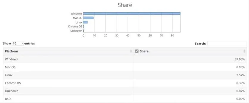 Статистика використання операційних систем Windows