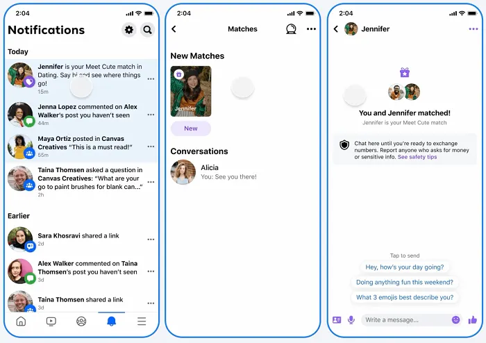 Окрім асистента, сервіс отримав функцію Meet Cute. Вона автоматично підбирає пару за допомогою алгоритмів Meta, спираючись на дані профілю, і пропонує "сюрприз-знайомство", минаючи тривалі пошуки.