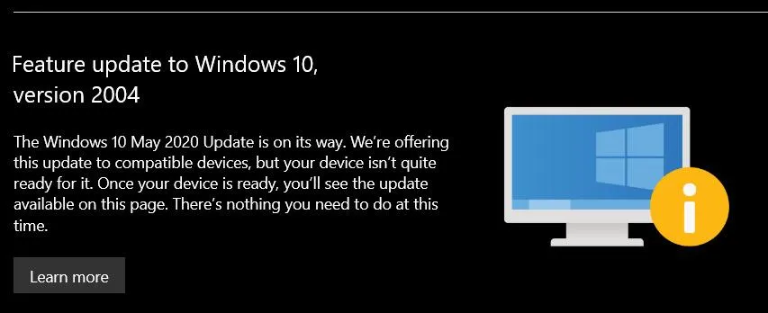 Система видає повідомлення про те, що пристрій, на якому встановлена система не цілком готовий до встановлення оновлення. Таке повідомлення бачать власники з нестандартними конфігураціями, а також ті в кого встановлені старі версії драйверів NVIDIA.