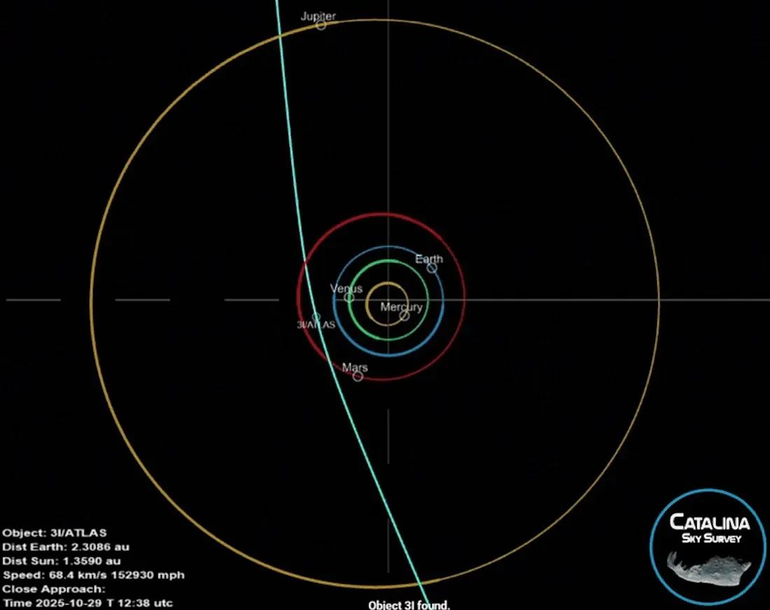 Траєкторія об'єкта 3I/ATLAS / Фото Catalina Sky Survey
