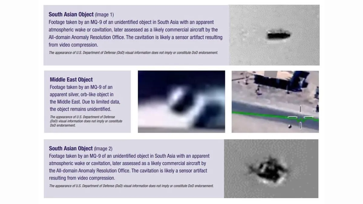 Одним з важливих аспектів звіту було включення візуальних доказів, які містили зображення різних аномальних явищ, як ідентифікованих, так і неідентифікованих. Серед цих документів було одне відео, на якому зображено кулястий об'єкт у польоті без жодних видимих двигунів.