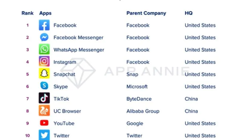 Лідером глобального рейтингу став клієнт соціальної мережі Facebook. На другій і третій сходинці розмістилися месенджери Messenger і WhatsApp, які також належать коммпанії Facebook.