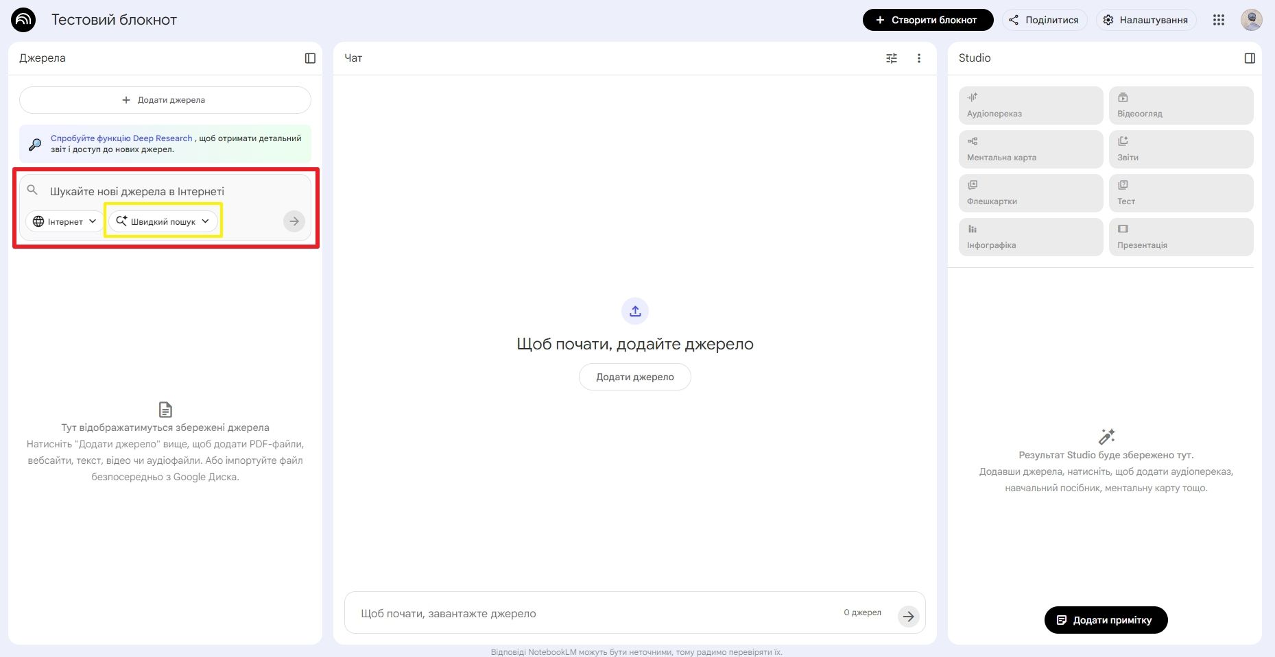 Таким чином NotebookLM дозволяє самостійно вибирати рівень деталізації дослідження. Deep Research підходить для академічної роботи та серйозних досліджень, тоді як Fast Research ідеальний для швидкого ознайомлення з темою. Обидві функції мають своє призначення, і платформа робить їх використання максимально зручним.