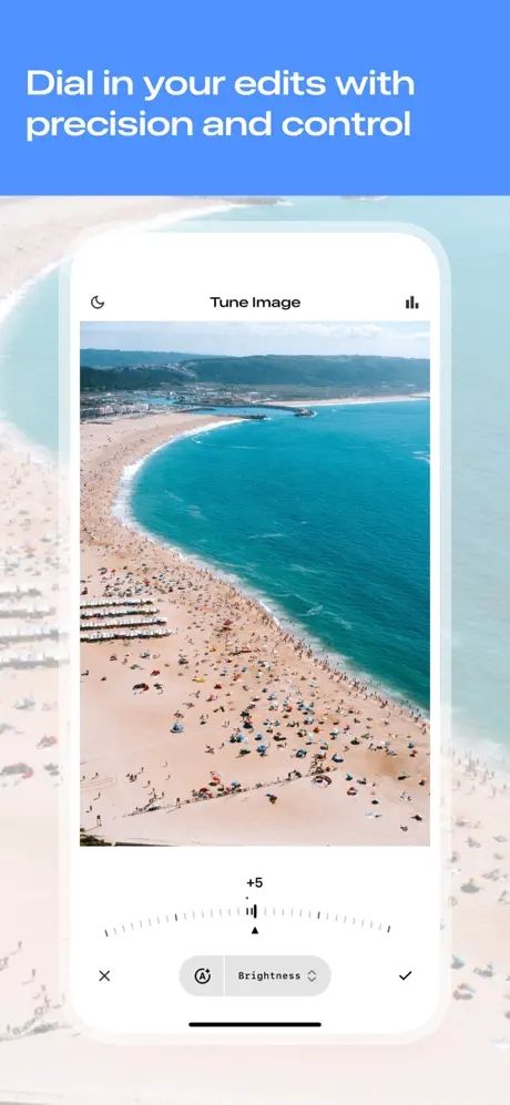 - Користувачі можуть змінювати параметри редагування свайпами вліво та вправо, як і раніше, але тепер у багатьох інструментах з'явився новий дугоподібний контролер для точного налаштування.