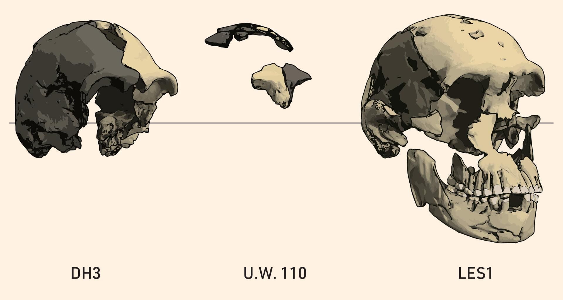 Тривимірна реконструкція знайденого черепа у порівнянні з черепами дорослих Homo naledi / Фото Sci-News