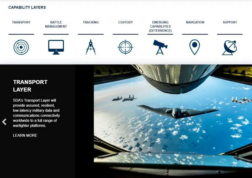 Ключовим компонентом стратегії нового агентства є "Національна оборонна космічна архітектура", яка дозволить надавати різні послуги для військових, включаючи відстеження гіперзвукових ракет, навігацію в разі збоїв в системі GPS, управління боєм і інші. В рамках неї передбачається створити сім "шарів", і один з них буде "транспортним". Шар буде включати від 300 до 500 супутників для роботи вузла космічного зв'язку. Використовуючи оптичні лінії зв'язку, ці супутники будуть передавати сигнали один одному, а також з іншим верствам мережі і на Землю.