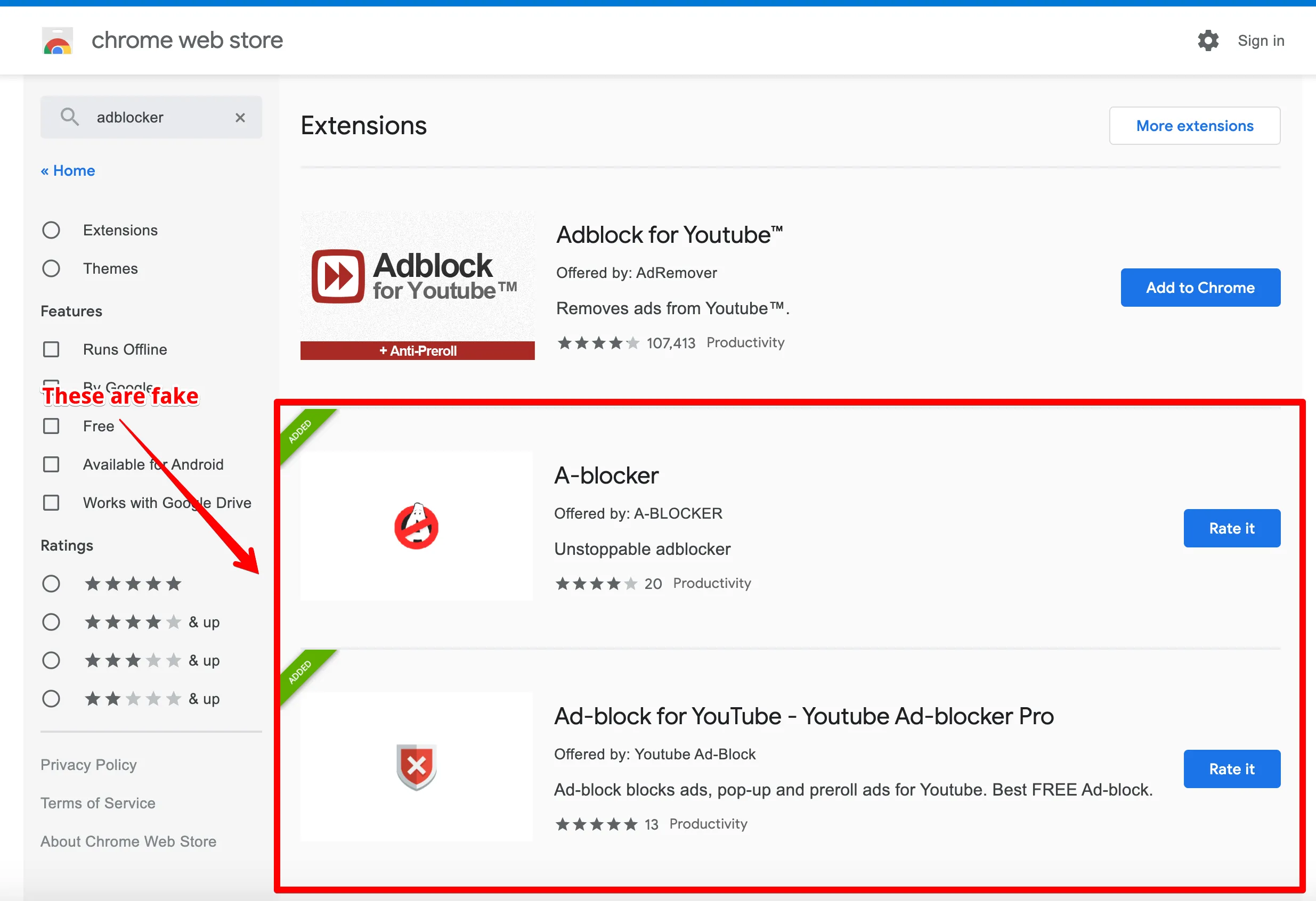 Якщо вірити опублікованому дослідженню, заявлених функцій не виконували 245 з 295 розширень, при цьому більшість з них після встановлення скачували шкідливий код зі стороннього сервера і починало самостійно "підкидати" рекламу в результати пошукової видачі Google і Bing.
