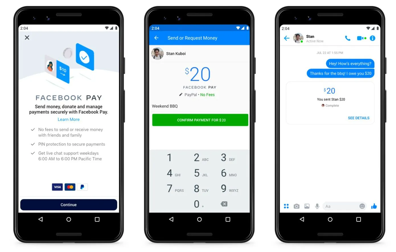 Для здійснення платежів у Facebook Pay необхідно прив'язати банківську карту (Mastercard, Visa) або електронний гаманець PayPal (в Україні не працює) до свого облікового запису. У користувачів є можливість переглядати історію платежів та обирати валюту. Платежі здійснюють в доларах за курсом банку.