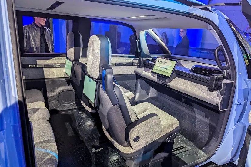В салоні машин немає ні керма, ні педалей, а на бічних поверхнях кузова немає дзеркал заднього виду, оскільки їх замінюють камери.