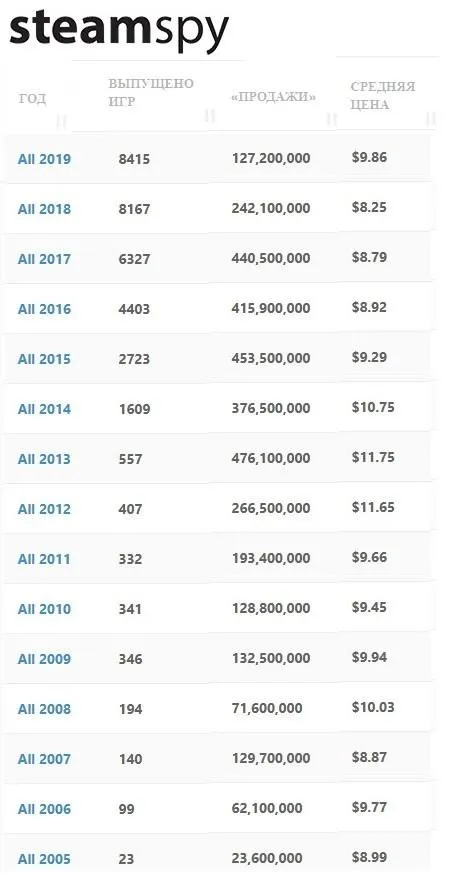 Статистика покупок в Steam з 2005 року