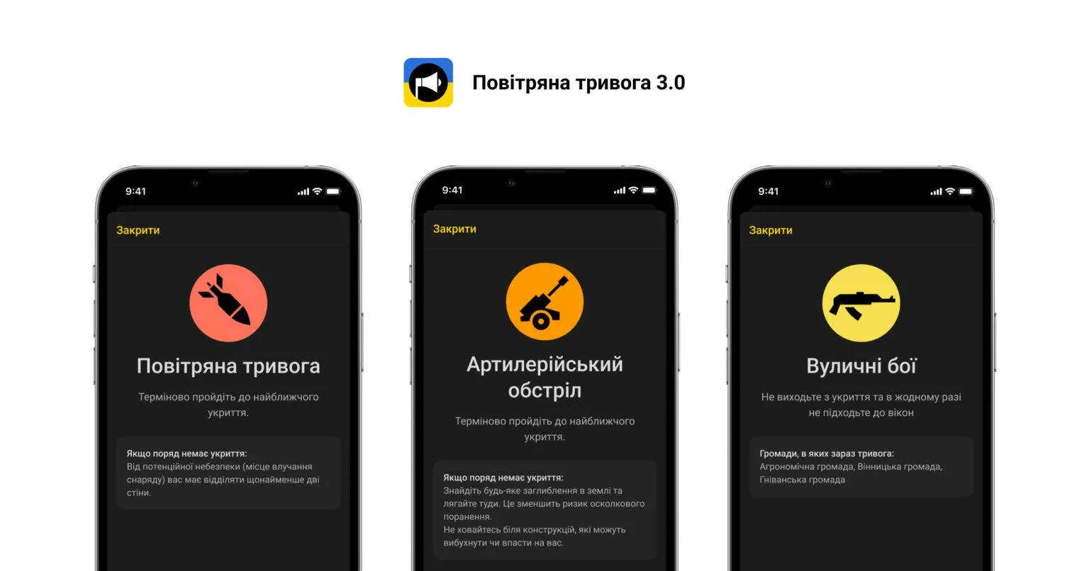 Тепер у застосунку окрім сповіщень про повітряну тривогу з'явилися повідомлення про артилерійські обстріли і навіть вуличні бої.