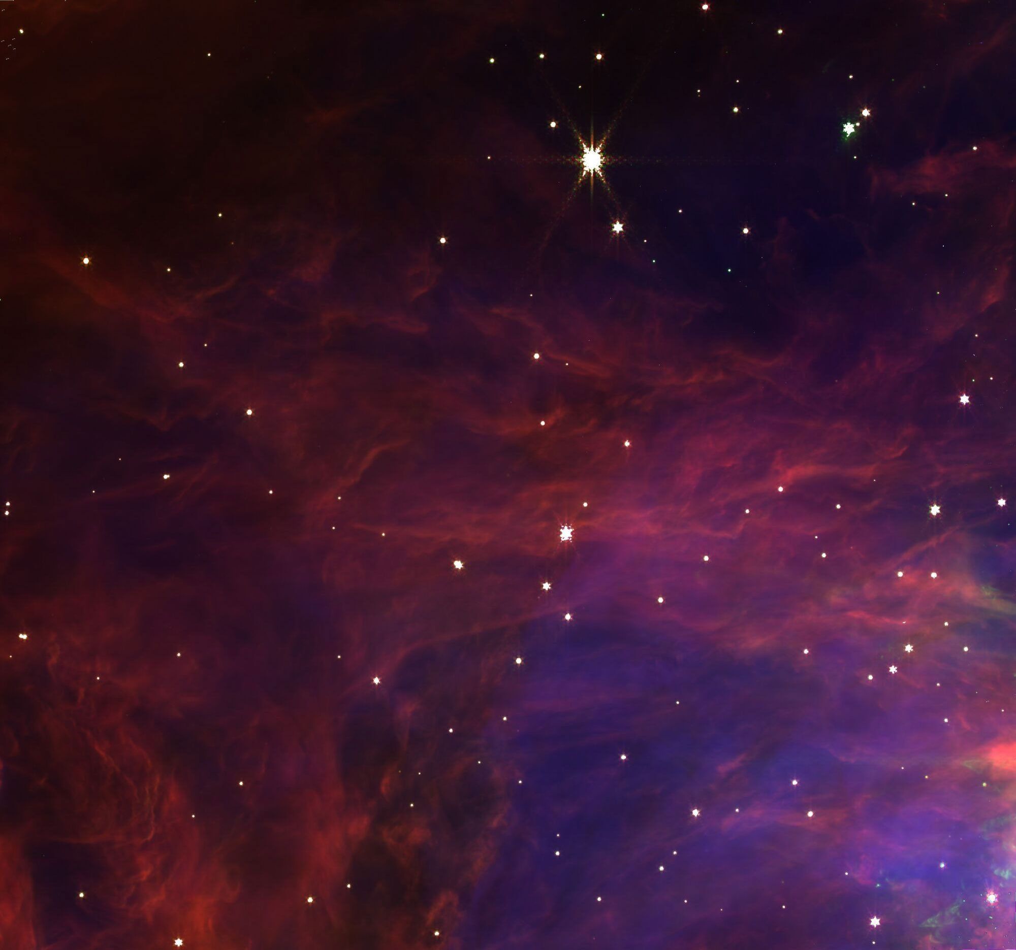 Щільні скупчення газу і пилу в туманності Оріона традиційно затуляють багато її структур при спостереженні у видимому спектрі світла. Однак інфрачервоні можливості телескопа Джеймса Вебба дозволяють йому зазирнути крізь ці скупчення, що дає змогу чіткіше розгледіти нагріті хмари.