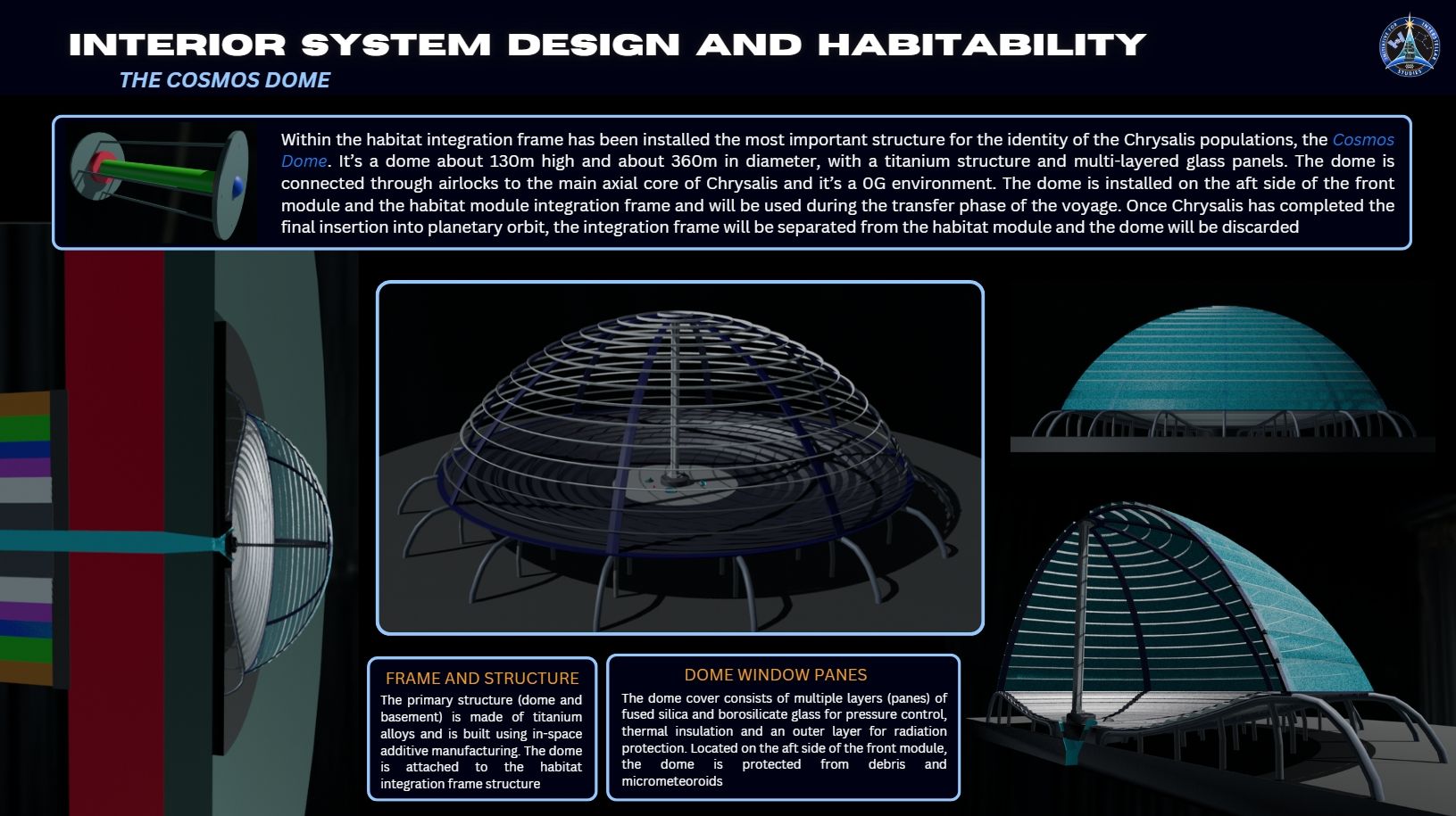 Родзинкою проєкту є "Космічний купол" (Cosmos Dome) висотою 130 метрів і діаметром 360 метрів. Це єдине місце, де мешканці зможуть спостерігати за космосом у стані невагомості. Купол також забезпечує теплоізоляцію та захист від космічного випромінювання.