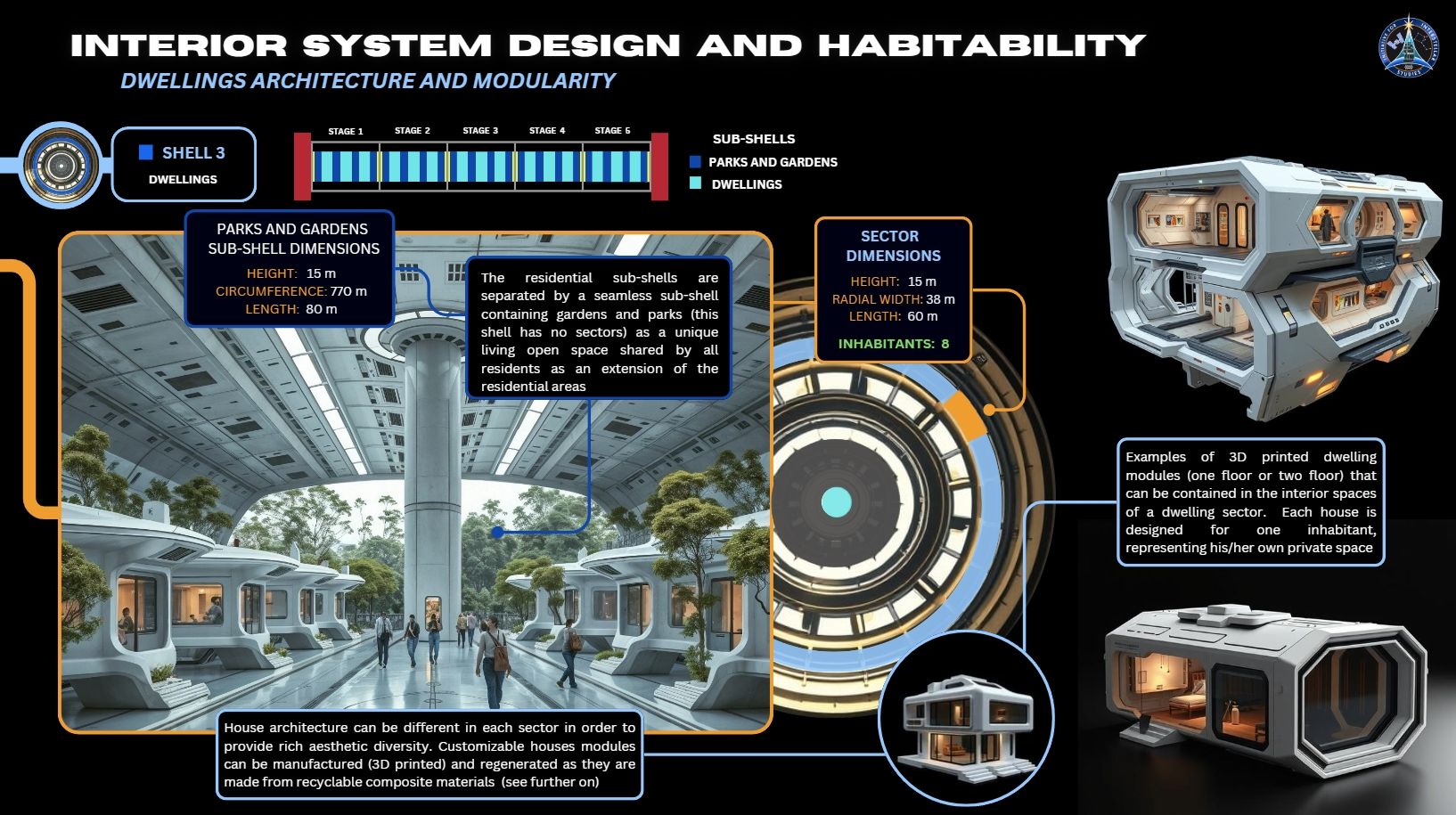 - Третій шар містить житлові модулі, надруковані на 3D-принтері.
