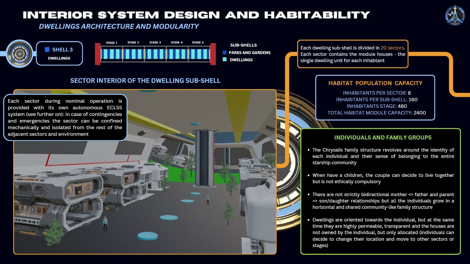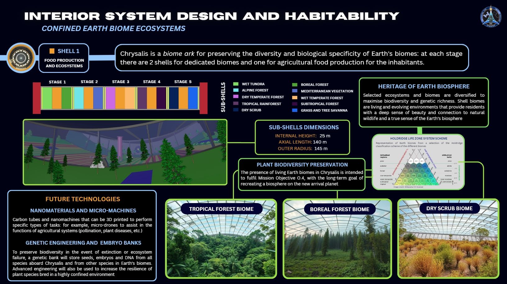 Chrysalis є так званим "кораблем поколінь", оскільки подорож триватиме настільки довго, що на борту зміниться кілька поколінь людей. Щоб забезпечити комфортні умови, схожі на земні, "Хризаліда" має постійно обертатися навколо своєї осі, створюючи штучну гравітацію.
