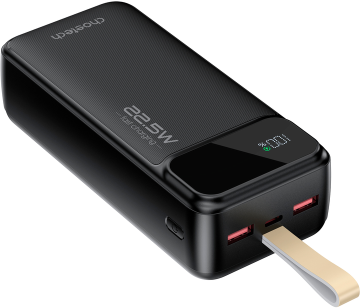 Елегантний і потужний повербанк із цифровим дисплеєм і ємністю 40 000 мА·год. Оснащений трьома портами (два USB-A, один USB-C) та підтримкою швидкої зарядки до 18 Вт. У комплекті є кабель Type-C/Type-C. Пристрій важить близько кілограма, але завдяки мінімалістичному дизайну виглядає сучасно й охайно.