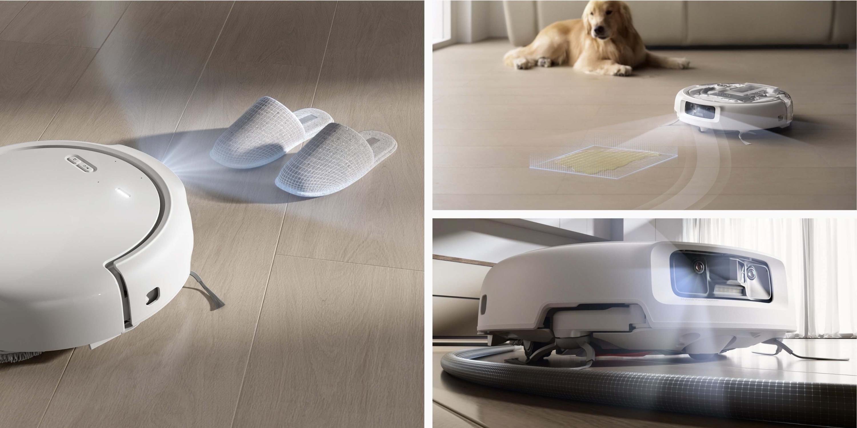 Ключова особливість новинки – система навігації, запозичена з дронів. Вона складається з бінокулярного датчика "риб'яче око" та трьох лазерних сенсорів, що працюють у парі з алгоритмами машинного навчання. Це дозволяє пилососу розпізнавати й оминати навіть дуже дрібні предмети, наприклад, кабелі завтовшки 2 мм.