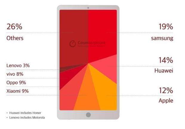 Согласно результатам, самым продаваемым брендом смартфонов в мире остается компания Samsung, занимая 19% на рынке. Далее идет китайская корпорация Huawei с 14%. А компания Apple держится на 3 месте с показателем 12%.